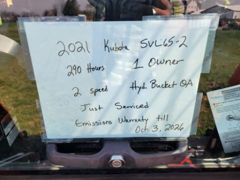 2021 Kubota SVL65-2 Track Skidsteer 'Ride & Drive - Drive Train Guarantee' - 292 Hours on Meter, E-ROPS, ISO Pilot Control, Power Quick Attach, Aux Hydraulics, Heat, Air, Radio, / TAG# 14767 -- Item Located @ Weavers Compact Tractor 22 Fish Hatchey Rd, Shippensburg PA 17257