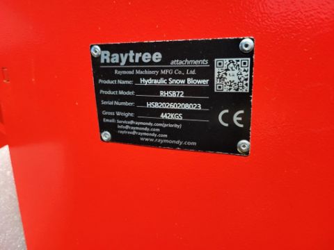 Raytree RHSB72 Snow Blower 'NEW' - 72", Universal Quick Attach, Hydraulic Drive, -( FILE PHOTOS MAY HAVE BEEN USED FOR THIS UNIT, COLOR And Condition may not be exact due to the quality of workmanship on this unit, YOU ARE BUYING THIS UNIT AS-IS, MARTIN'S AUCTION SERVICE DOES NOT GUARANTEE ANY FUNCTIONALITY OF THIS UNIT SN# / TAG# 14930 -- Item Located @ Weavers Compact Tractor 22 Fish Hatchey Rd, Shippensburg PA 17257