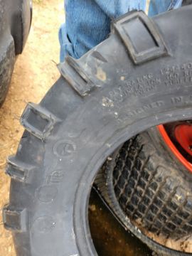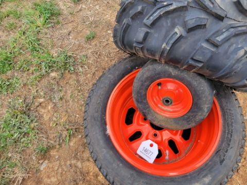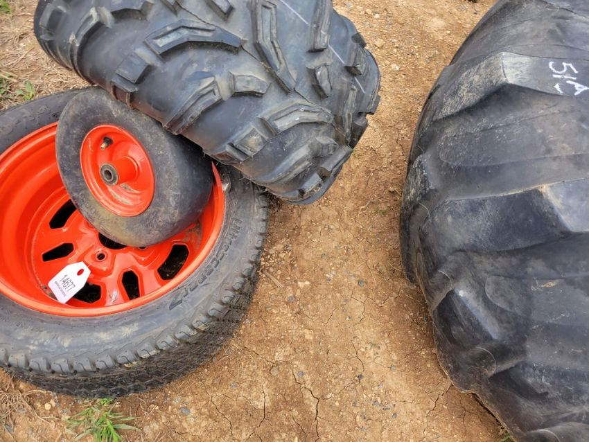 Misc Tires '3' - Kubota Zero Turn tire on Wheel (22x10-14), Front Zero Turn Tire on Wheel (11x4.00-5), 25x11-12 Tire only All 1 Money SN# / TAG# 14677 -- Item Located @ Weavers Compact Tractor 22 Fish Hatchey Rd, Shippensburg PA 17257