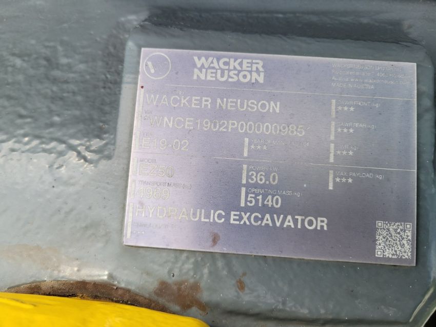 Wacker Neuson EZ50 Mini Excavator 'Ride & Drive - Drive Train Guarantee' - 9 Hours on Meter, Cab, Backfill Blade, Rubber Tracks, 3RD Valve, Power Quick Attach, Selectable Pattern, 16" Bucket, / TAG# 14302 -- Item Located @ Weavers Compact Tractor 22 Fish Hatchey Rd, Shippensburg PA 17257
