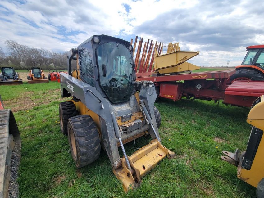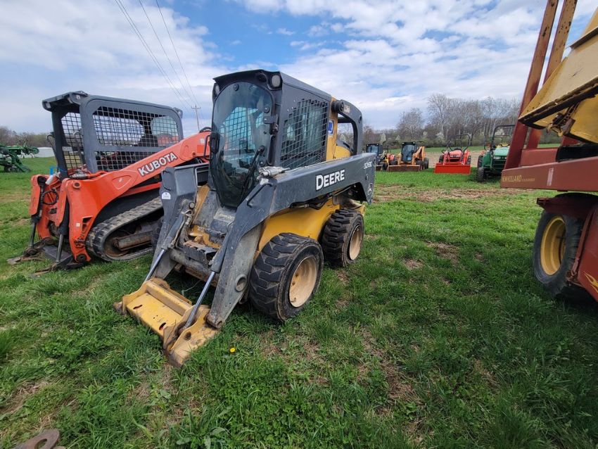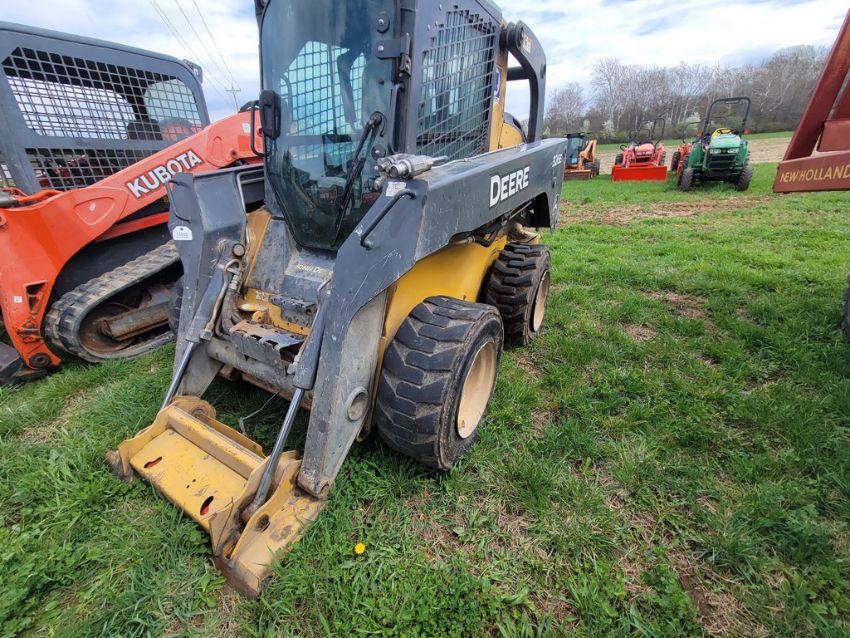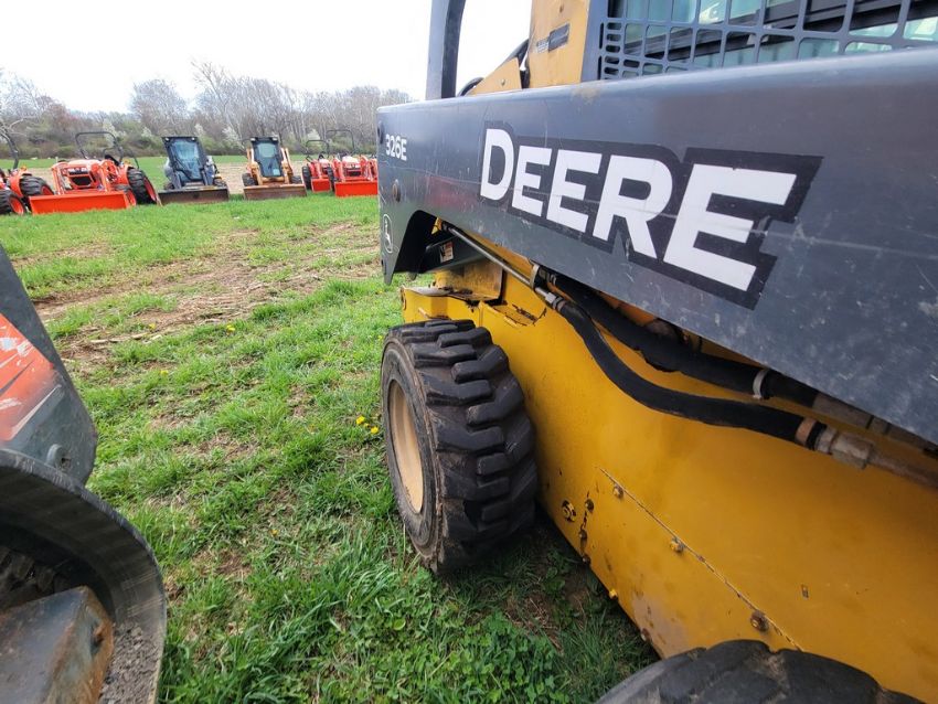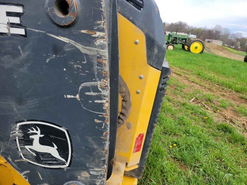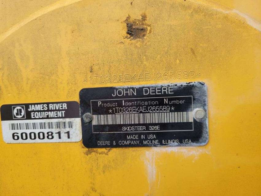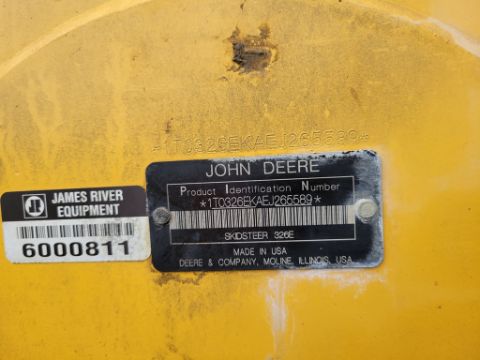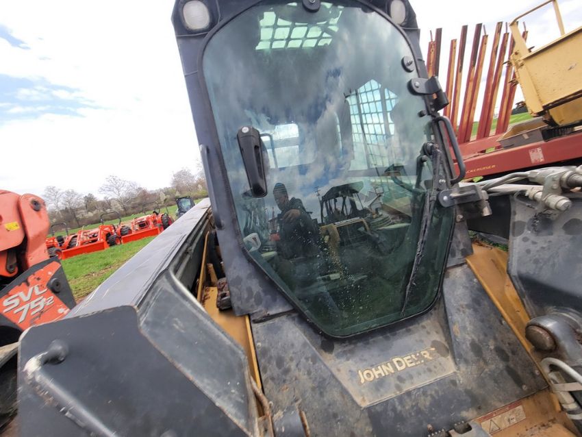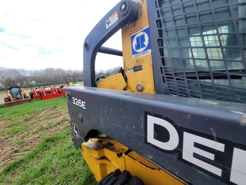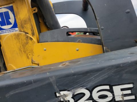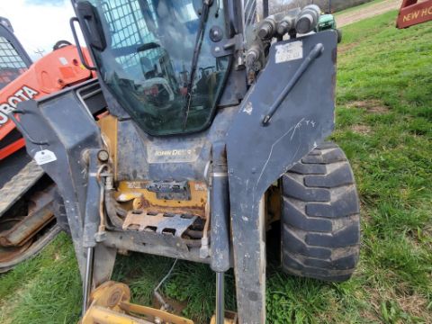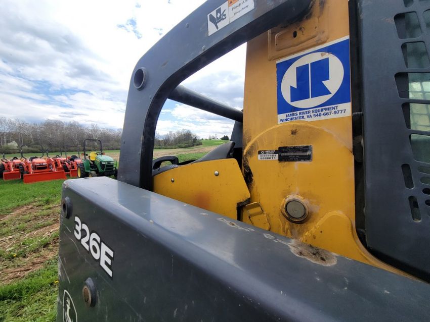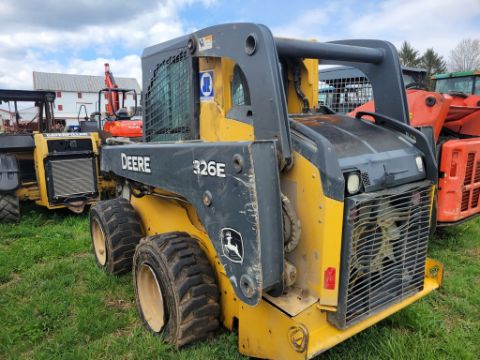 2014 Deere 326E Skid Steer 'AS-IS - For Parts or Repair' - Erops, Auxiliary Hydraulics, Power Latch, Reversing Fan, A/C & Heat, Radio, Fire Damage / TAG# 14858 -- Item Located @ Weavers Compact Tractor 22 Fish Hatchey Rd, Shippensburg PA 17257