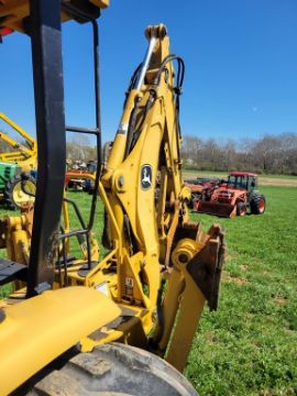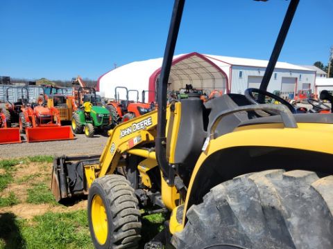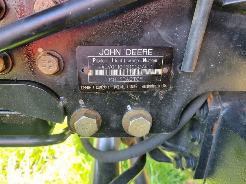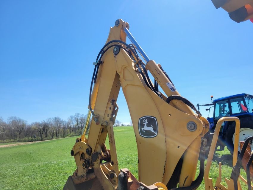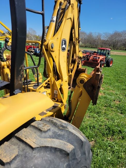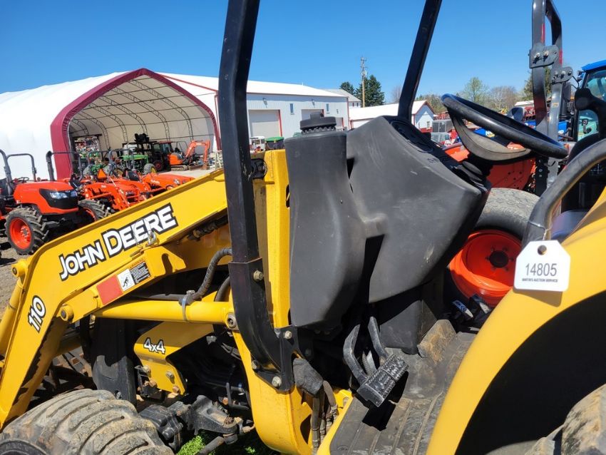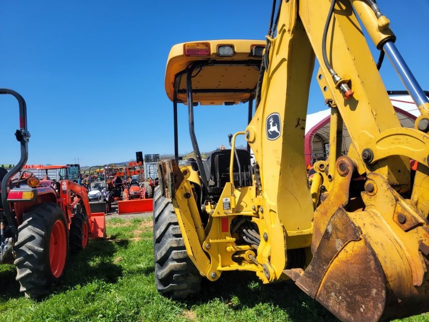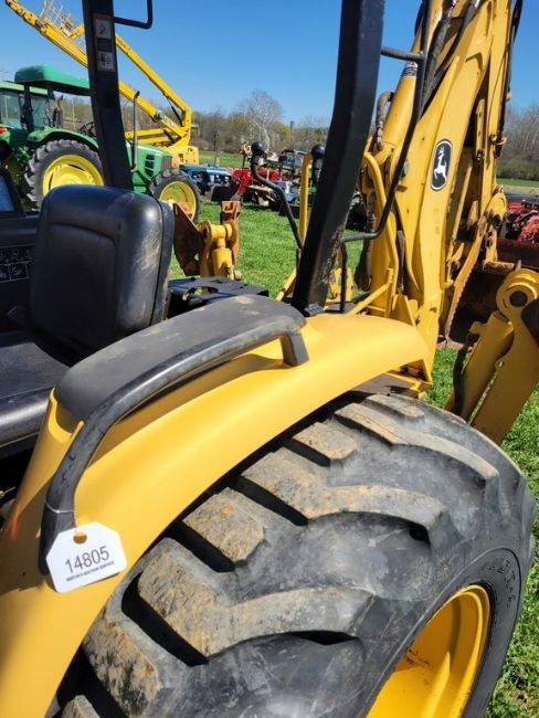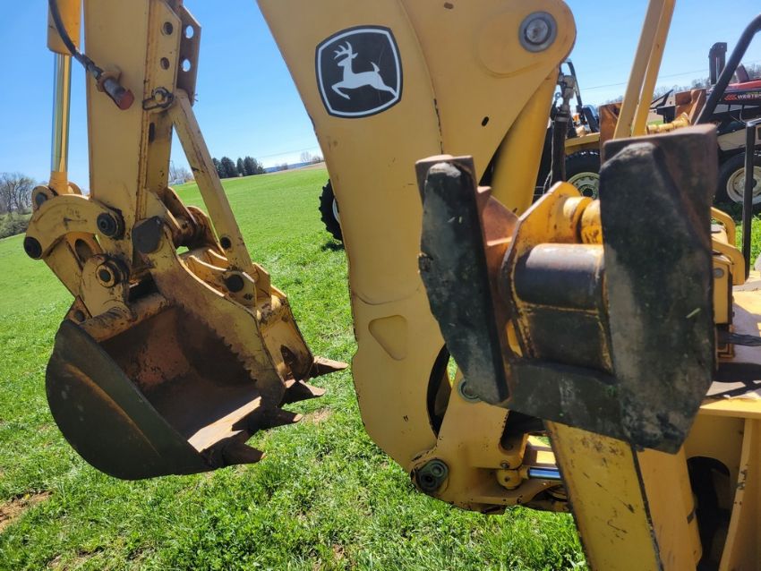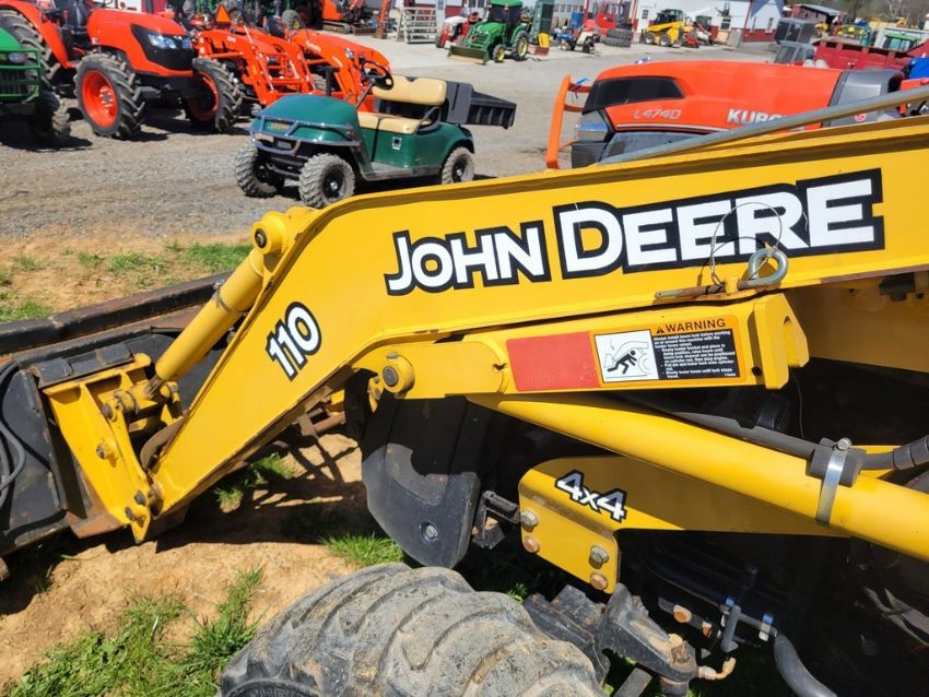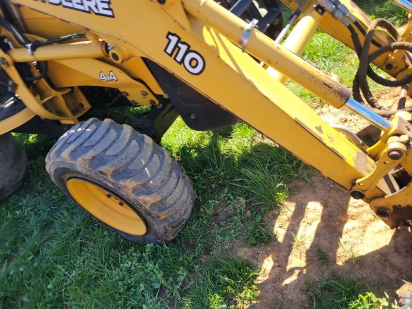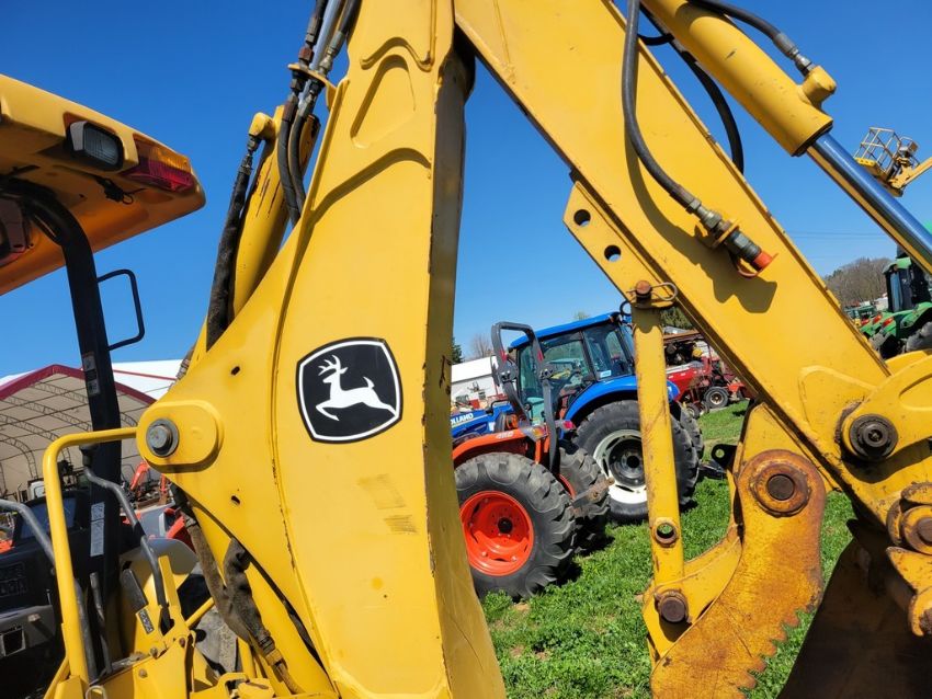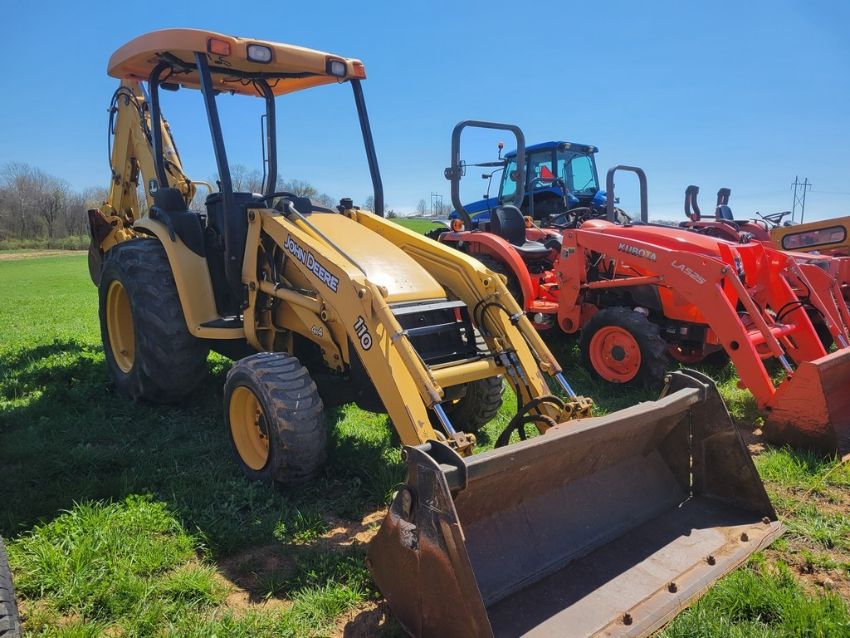 2003 Deere 110 Tractor Loader Backhoe 'Ride & Drive - Drive Train Guarantee' - 41 Hours on Meter, 4x4, Hydro, 4in 1 Front Bucket, 3rd Function on the Loader, Universal Quick Attach Bucket, Auxiliary Hydraulics on hoe, Manual Thumb, Manual Quick Coupler on hoe, Not Original Hours / TAG# 14805 -- Item Located @ Weavers Compact Tractor 22 Fish Hatchey Rd, Shippensburg PA 17257