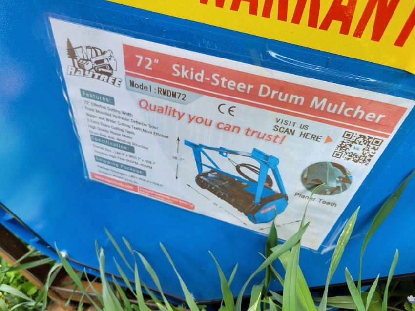 Raytree RMDM72 Drum Mulcher 'NEW' - 72", Universal Quick Attach, High Flow, Universal Quick Attach Hydraulic Drive, -( FILE PHOTOS MAY HAVE BEEN USED FOR THIS UNIT, COLOR And Condition may not be exact due to the quality of workmanship on this unit, YOU ARE BUYING THIS UNIT AS-IS, MARTIN'S AUCTION SERVICE DOES NOT GUARANTEE ANY FUNCTIONALITY OF THIS UNIT SN# / TAG# 14931 -- Item Located @ Weavers Compact Tractor 22 Fish Hatchey Rd, Shippensburg PA 17257
