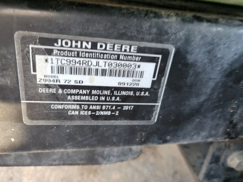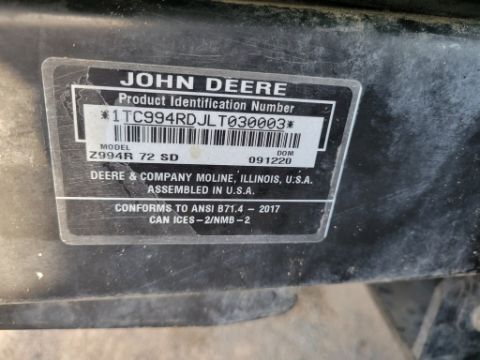 2020 John Deere Z994R Zero Turn 'Ride & Drive - Drive Train Guarantee' - 1,163 Hours on Meter, 72" Deck, Yanmar Diesel, Suspension Seat, Tweels, / TAG# 14943 -- Item Located @ Weavers Compact Tractor 22 Fish Hatchey Rd, Shippensburg PA 17257
