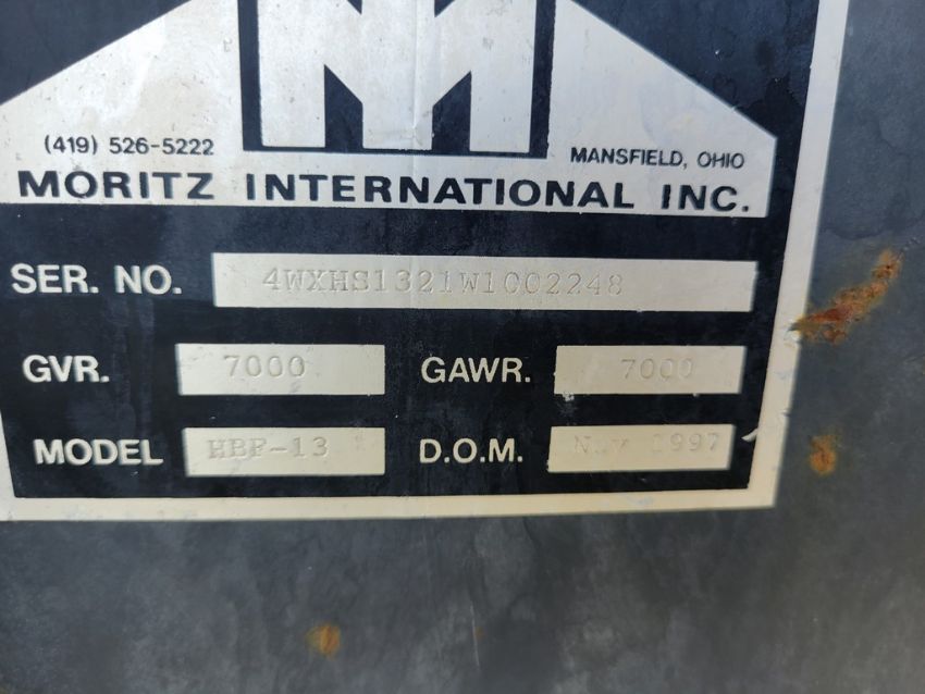 1998 Moritz HBF13 Livestock Trailer 'Title in the Office' - 12ft x 6 ft, Tandem Axle, 7k gvwr, Title Note - There will be a $25 fee charged to process the title, WE WILL NEED a COPY OF FRONT AND BACK OF PHOTO ID FOR THE PERSON WHOSE NAME THE UNIT WILL BE TITLED IN, All titles will be mailed, No Titles will be Available Sale Day / TAG# 14182 -- Item Located @ Weavers Compact Tractor 22 Fish Hatchey Rd, Shippensburg PA 17257