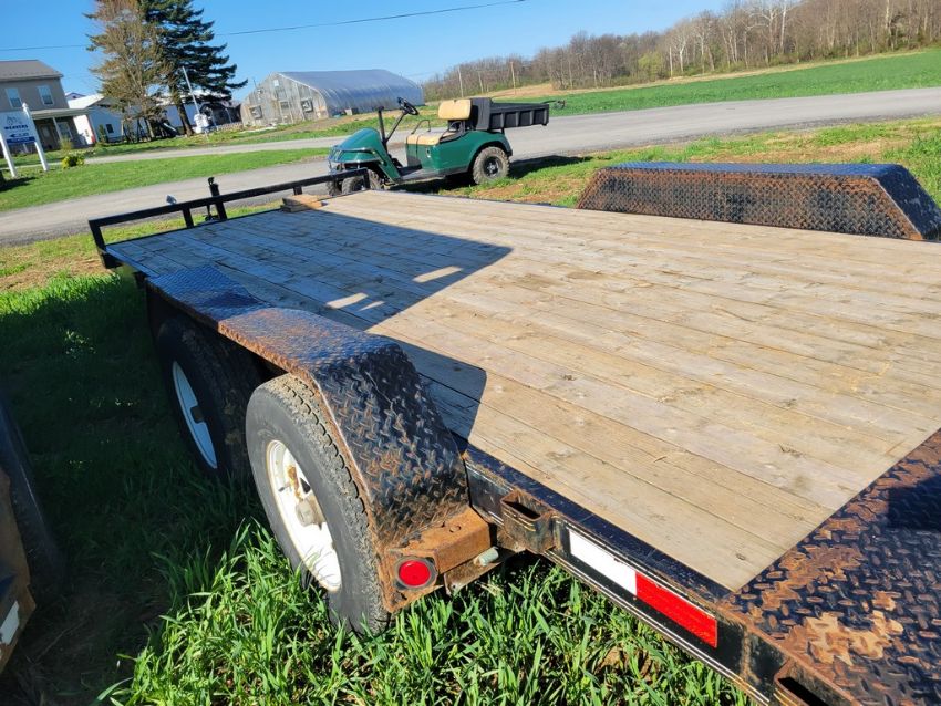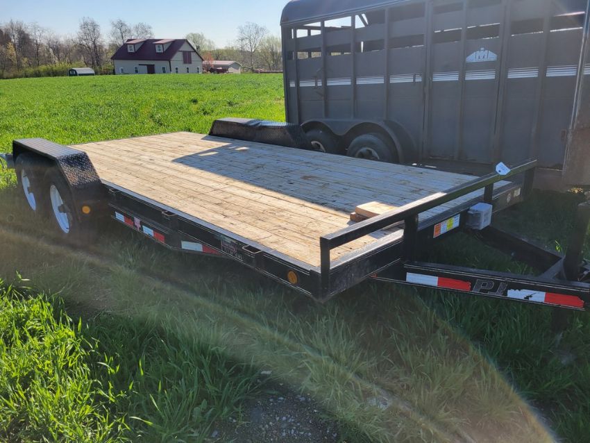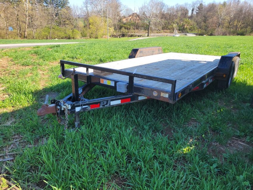 2012 PJ C5182 Car Trailer 'Title Coming Sale Day' - 16 ft + 2ft Beaver Tail x 83", Pull Out Ramps, Jacks for Rear support, 9900 gvwr, Title Note - There will be a $25 fee charged to process the title, WE WILL NEED a COPY OF FRONT AND BACK OF PHOTO ID FOR THE PERSON WHOSE NAME THE UNIT WILL BE TITLED IN, All titles will be mailed, No Titles will be Available Sale Day / TAG# 14663 -- Item Located @ Weavers Compact Tractor 22 Fish Hatchey Rd, Shippensburg PA 17257
