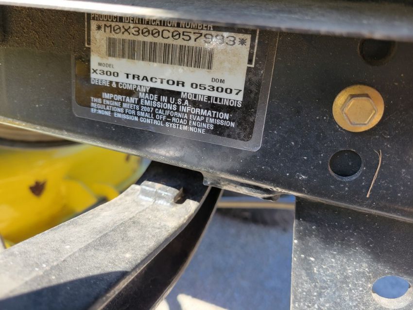2007 John Deere X300 Riding Tractor 'Runs & Operates - NO Guarantee' - 997 Hours on Meter, 42" Deck, Hydro, / TAG# 14999 -- Item Located @ Weavers Compact Tractor 22 Fish Hatchey Rd, Shippensburg PA 17257