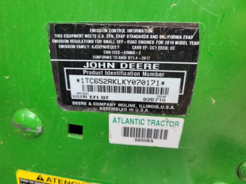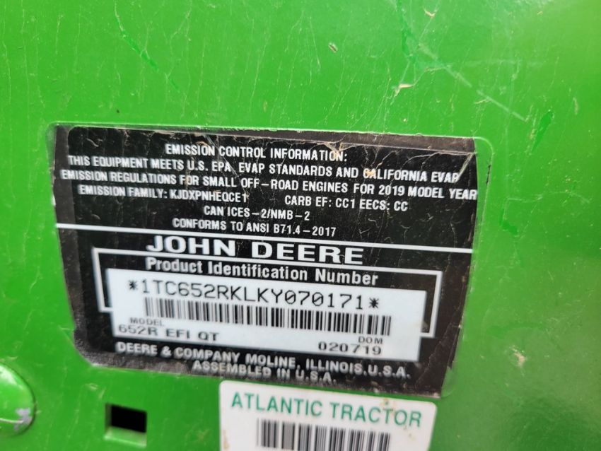 2019 John Deere 652R Stand On Zero Turn 'Ride & Drive - Drive Train Guarantee' - 877 Hours on Meter, 52" Deck, Hydro, EFI Kohler Gas, / TAG# 14292 -- Item Located @ Weavers Compact Tractor 22 Fish Hatchey Rd, Shippensburg PA 17257