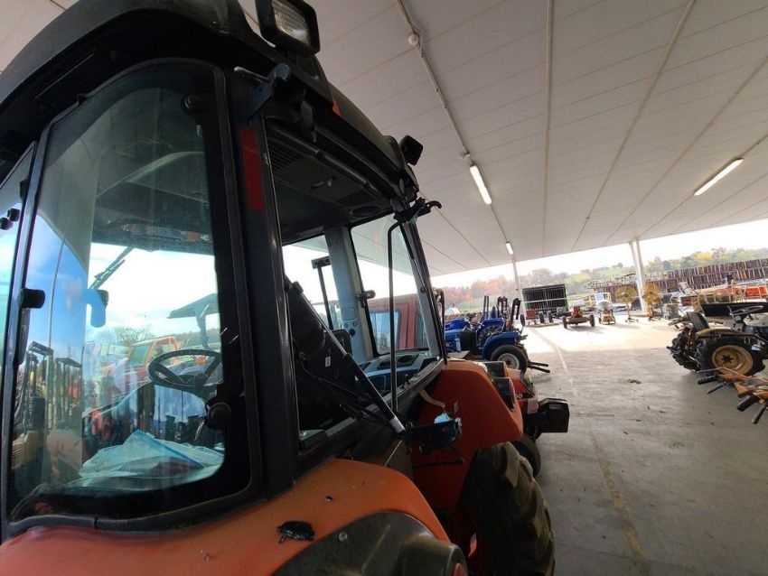 Kioti DK50SE Cab Compact Loader Tractor 'Ride & Drive' - 1,701 Hours on Meter, 4x4, Hydro, Universal Quick Attach Bucket, A/C & Heat, 3 point, 540 pto, 2 scv's, REAR WINDOW BROKEN SN# KH2300074 / Onsite Lot# 638 -- Item Located @ the Cumberland Valley Auction Yard - 101 Springfield Rd Shippensburg PA 17257
