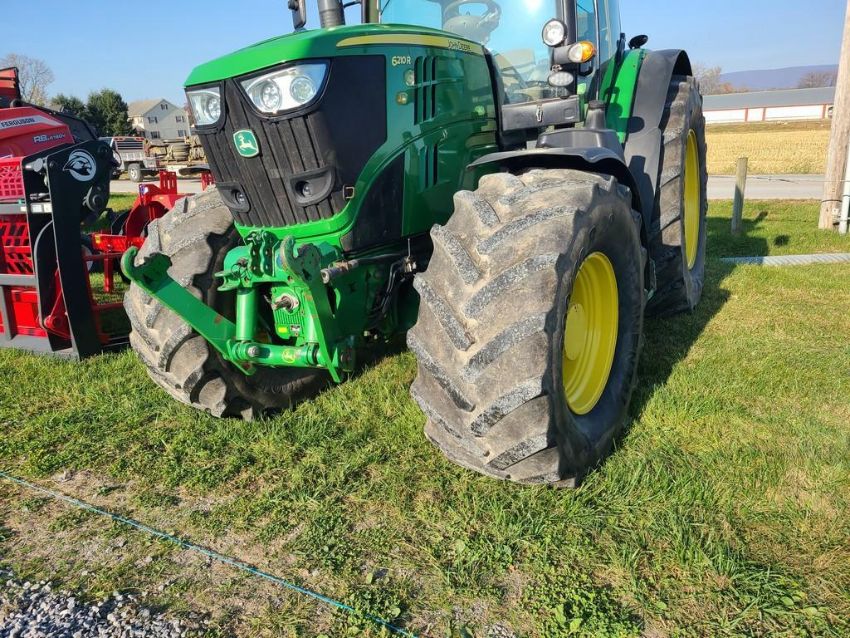 2011 John Deere 6210R Cab Tractor 'Ride & Drive' - 13,529 Hours on Meter, 4x4, Front 3 Point, Front Fenders, Front PTO, Front scv, Corner Post Exhaust, 600/70R28 Front Tires, 650/75R42 Rear Tires, 540 / 1000 pto, 4 scv's, 3 point, Hydraulic Trailer Brakes, A/C & Heat, 50k IVT, Left Hand Reverser, 7300 HOURS ON USED REPLACEMENT ENGINE put in 6/23, Front PTO DOES NOT WORK SN# 1L06210RCBR703860 / Onsite Lot# 2000 -- Item Located @ the Cumberland Valley Auction Yard - 101 Springfield Rd Shippensburg PA 17257