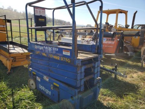 Upright MX19 Scissors Lift 'Runs & Operates' - NEW BATTERIES, / Onsite Lot# 1419 -- Item Located @ the Cumberland Valley Auction Yard - 101 Springfield Rd Shippensburg PA 17257