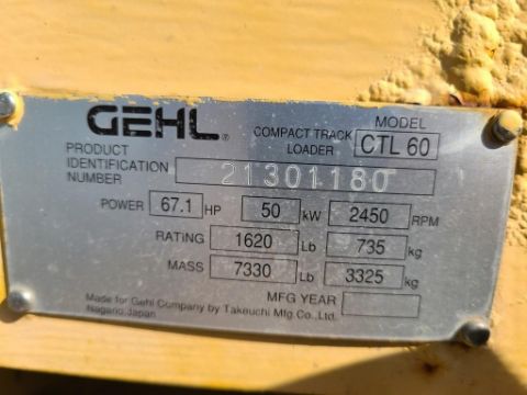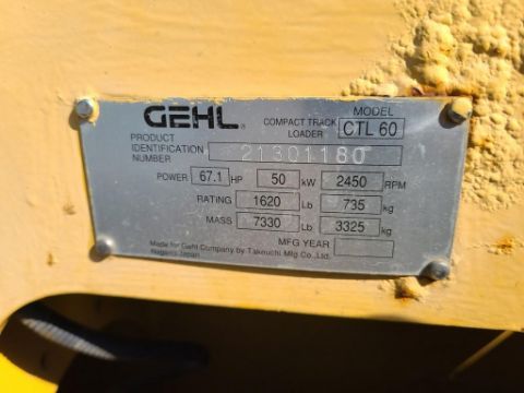 Gehl CTL60 Track Skid Steer 'Ride & Drive' - 6,222 Hours on Meter, Orops, Auxiliary Hydraulics, Manual Latch, Metal Cleats, Yanmar Diesel, Joysticks, SN# 21301180 / Onsite Lot# 2048 -- Item Located @ the Cumberland Valley Auction Yard - 101 Springfield Rd Shippensburg PA 17257