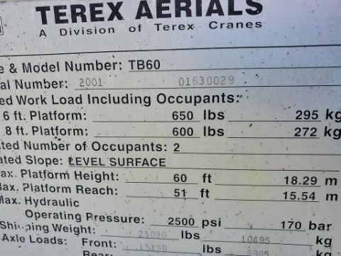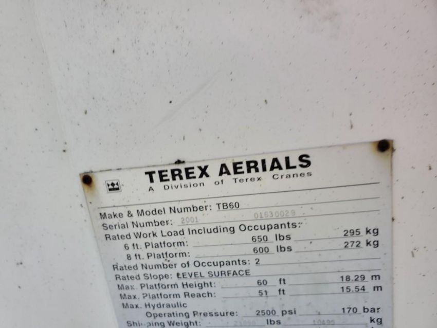 2001 Terex TB60 Manlift 'Runs & Operates' - 2,996 Hours on Meter, 4x4, Ford Dual Fuel, SN# 01630029 / Onsite Lot# 2111 -- Item Located @ the Cumberland Valley Auction Yard - 101 Springfield Rd Shippensburg PA 17257
