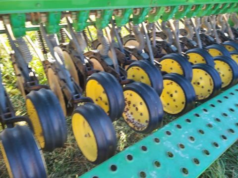 John Deere 450 Grain Dill - Double Disc, Grass Box, Press Wheels, 10 1/2 ft, 21row, SN# N00450X007066 / Onsite Lot# 3421 -- Item Located @ the Cumberland Valley Auction Yard - 101 Springfield Rd Shippensburg PA 17257