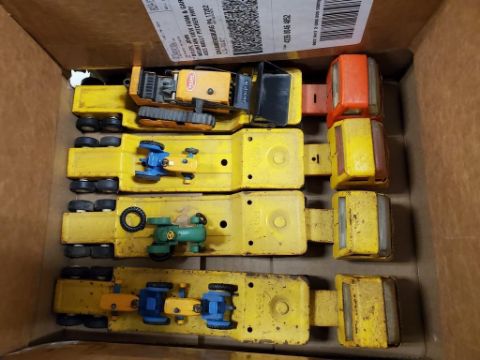 Box of Toys - Tonka Trucks & Trailers / Onsite Lot# 7020 -- Item Located @ Turkeyfoot Equipment - 4871 Molly Pitcher Hwy, Chambersburg PA 17202