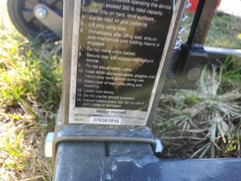 Pittsburgh Mower Jack 'NEW' - 300lb Cap. SN# 370361816 / Onsite Lot# 3916 -- Item Located @ Turkeyfoot Equipment - 4871 Molly Pitcher Hwy, Chambersburg PA 17202