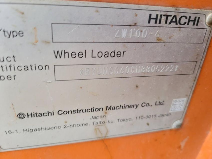 2017 Hitachi ZW100 Wheel Loader 'Ride & Drive' - 6,060 Hours on Meter, Erops, Hydraulic Quick Coupler, A/C & Heat, Radio, SN# RYUNS060CH8805222 / Onsite Lot# 2169 -- Item Located @ the Cumberland Valley Auction Yard - 101 Springfield Rd Shippensburg PA 17257