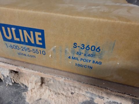 Uline S-3606 Poly Bags - 32"x40", 4 MIL, 100 Per Case, This is for one case, / TAG# 3817 -- Item Located @ 40 Running Pump Rd. Newville, PA. 17241. For more details regarding this unit, please call Aaron @ 417.876.6O21 or Andrew @ 717.816.18O3.