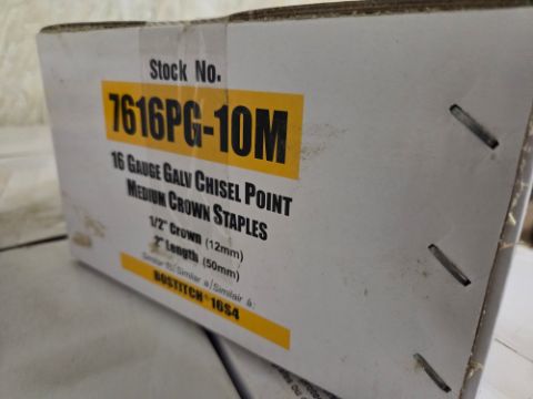 Spot Nails Medium Crown Staples - 16 Guage, Galvanized, 1/2" Crown, 2" Long, This is for 10 Cases, Sell by the Case x10, / TAG# 3818E -- Item Located @ 40 Running Pump Rd. Newville, PA. 17241. For more details regarding this unit, please call Aaron @ 417.876.6O21 or Andrew @ 717.816.18O3.