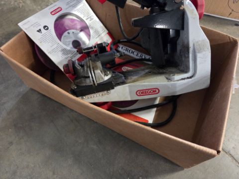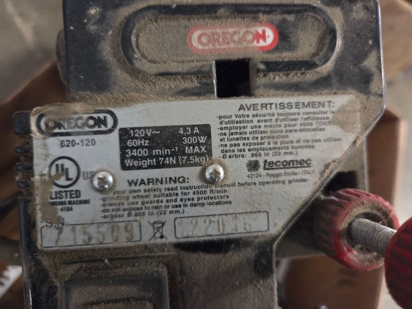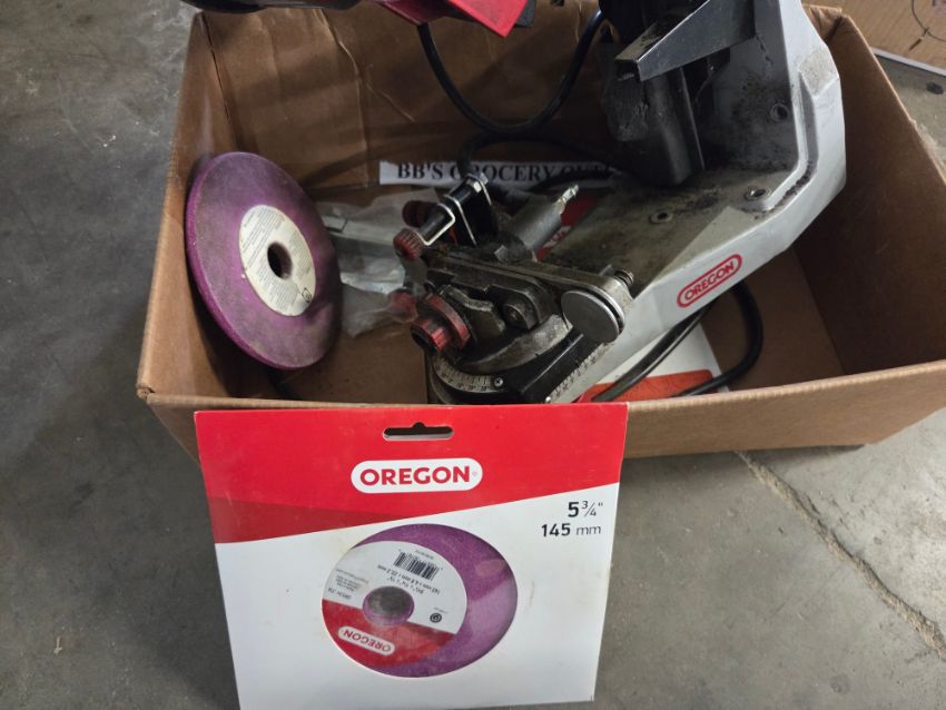 Oregon 620-120 Chain Saw Sharpener - W/ Extras, SN# 715509-122016 / TAG# 3863 -- Item Located @ 40 Running Pump Rd. Newville, PA. 17241. For more details regarding this unit, please call Aaron @ 417.876.6O21 or Andrew @ 717.816.18O3.