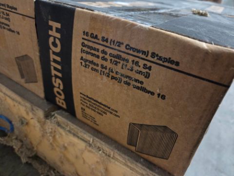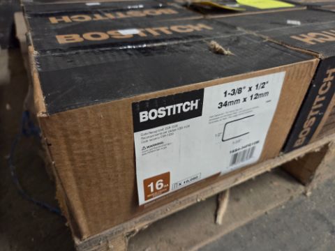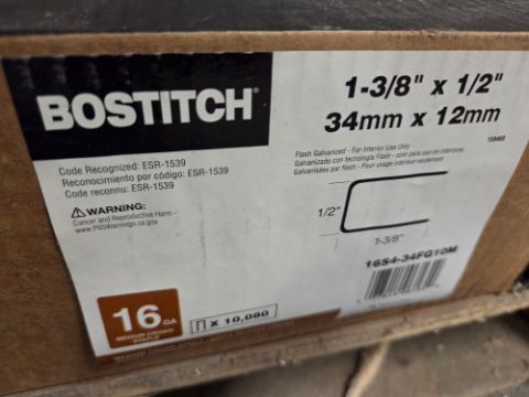 Bostitch Crown Staples - 16 Guage, Galvanized, 1/2" Crown, 1 3/8" Long, This is for 7 Cases, By the Case x7, / TAG# 3820 -- Item Located @ 40 Running Pump Rd. Newville, PA. 17241. For more details regarding this unit, please call Aaron @ 417.876.6O21 or Andrew @ 717.816.18O3.