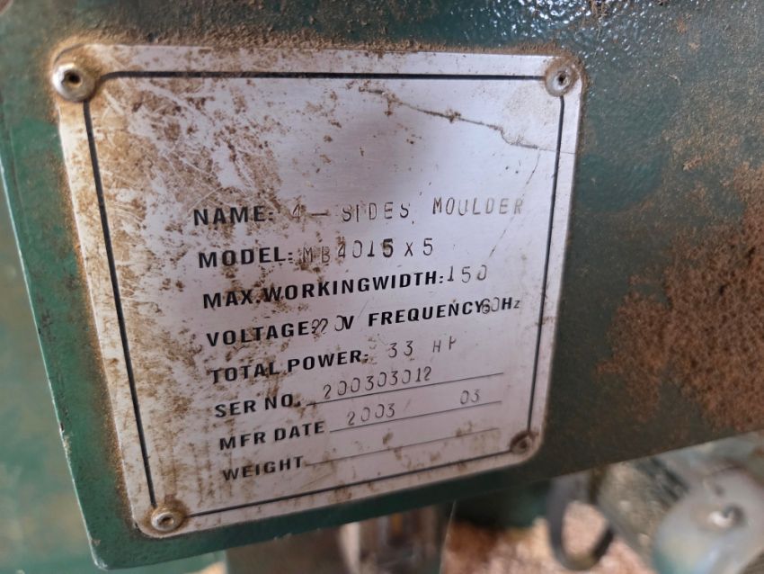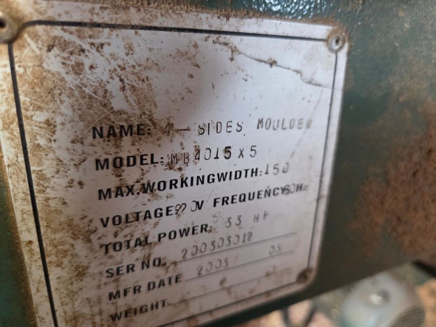 Bridgewood MB4015X5 4 Sides Moulder - 5 Head, 33 hp, 3 Phase, W/ Misc. Parts, SN# 200303012 / TAG# 3903 -- Item Located @ 40 Running Pump Rd. Newville, PA. 17241. For more details regarding this unit, please call Aaron @ 417.876.6O21 or Andrew @ 717.816.18O3.