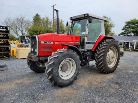 Massey Ferguson 3670 Cab Tractor 'Runs & Operates - NO Guarantee' - 4,672 Hours on Meter, 4x4, Front Fenders, 16.9R28 Front Tires, 480/80R42 Rear Tires, 540 / 1000 pto, 3 scv's, 3 point, Dynashift, Autotronic, SN# C299007 / TAG# 11596 -- Item Located @ the Churchtown Farms Auction Yard - 967 East Earl Rd, New Holland PA 17557