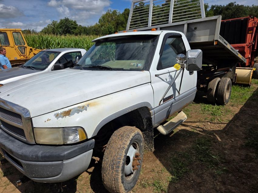 1995 Dodge Ram 3500 Truck 'Title, Runs & Operates' - 304,794 Miles on Meter, Dually, 5.9 Cummins, Manual Trans, 4x4, 11.5' Aluminum Flat Dump Bed, Farm Stickers, SN# 1B6MF36C7SS273435 / TAG# 3947 -- Item Located @ 339 Pick Rd. Millmont, PA. For questions about this unit, please call Earl @ 57O.217.1221