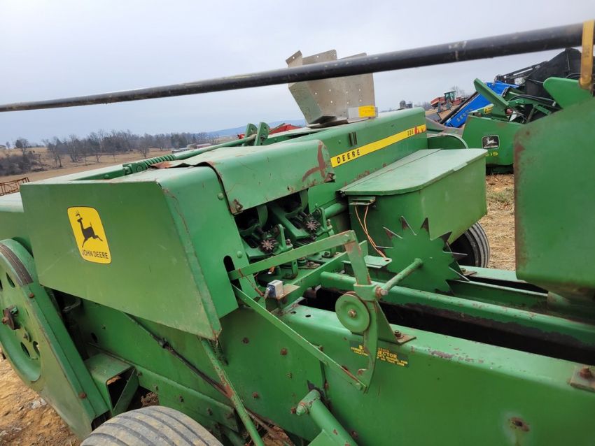 John Deere 336 Small Square Baler - 540 pto, Kicker, USED LAST SEASON, NEEDS A LITTLE WELDING ON WAGON HITCH SN# PlateMissing / TAG# 15138 -- Item Located @ the Cumberland Valley Auction Yard - 101 Springfield Rd Shippensburg PA 17257