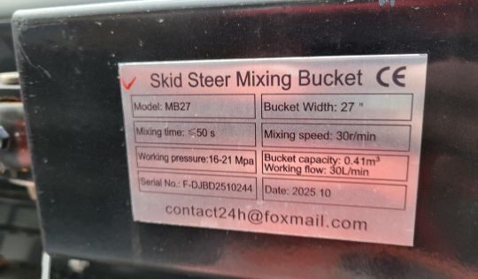 Giyi MB27 Mixing Bucket 'NEW' - Universal Quick Attach, 27" Wide ( FILE PHOTOS MAY HAVE BEEN USED FOR THIS UNIT, COLOR And Condition may not be exact due to the quality of workmanship on this unit, YOU ARE BUYING THIS UNIT AS-IS, MARTIN'S AUCTION SERVICE DOES NOT GUARANTEE ANY FUNCTIONALITY OF THIS UNIT / TAG# 14055 -- Item Located @ the Cumberland Valley Auction Yard - 101 Springfield Rd Shippensburg PA 17257