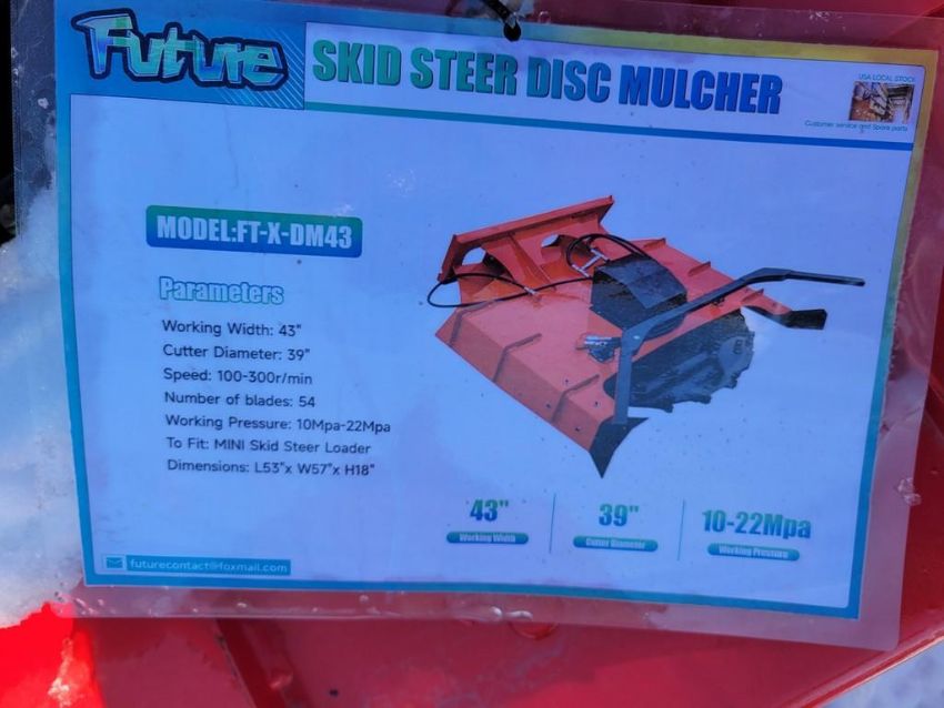 Future DM43 Disc Mulcher 'NEW' - 43" working width, 39" Cutter Diameter, Universal Quick Attach, NO LOADING OF THIS ITEM BEFORE MONDAY 2/16/2026 ( FILE PHOTOS MAY HAVE BEEN USED FOR THIS UNIT, COLOR And Condition may not be exact due to the quality of workmanship on this unit, YOU MIGHT NOT RECEIVE THE SERIAL NUMBER LISTED IN THE PICTURES RELY On the description for serial numbers, YOU ARE BUYING THIS UNIT AS-IS, MARTIN'S AUCTION SERVICE DOES NOT GUARANTEE ANY FUNCTIONALITY OF THIS UNIT / TAG# 13487 -- Item Located @ the Churchtown Farms Auction Yard - 967 East Earl Rd, New Holland PA 17557
