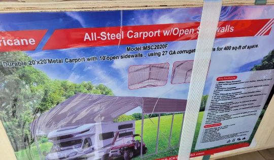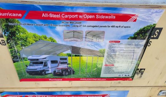 Hurricane MSC2020F Carport 'NEW' - 20x20, 10ft Open Side Walls, NO LOADING OF THIS ITEM BEFORE MONDAY 2/16/2026 ( FILE PHOTOS MAY HAVE BEEN USED FOR THIS UNIT, COLOR And Condition may not be exact due to the quality of workmanship on this unit, YOU MIGHT NOT RECEIVE THE SERIAL NUMBER LISTED IN THE PICTURES RELY On the description for serial numbers, YOU ARE BUYING THIS UNIT AS-IS, MARTIN'S AUCTION SERVICE DOES NOT GUARANTEE ANY FUNCTIONALITY OF THIS UNIT / TAG# 13673 -- Item Located @ the Churchtown Farms Auction Yard - 967 East Earl Rd, New Holland PA 17557