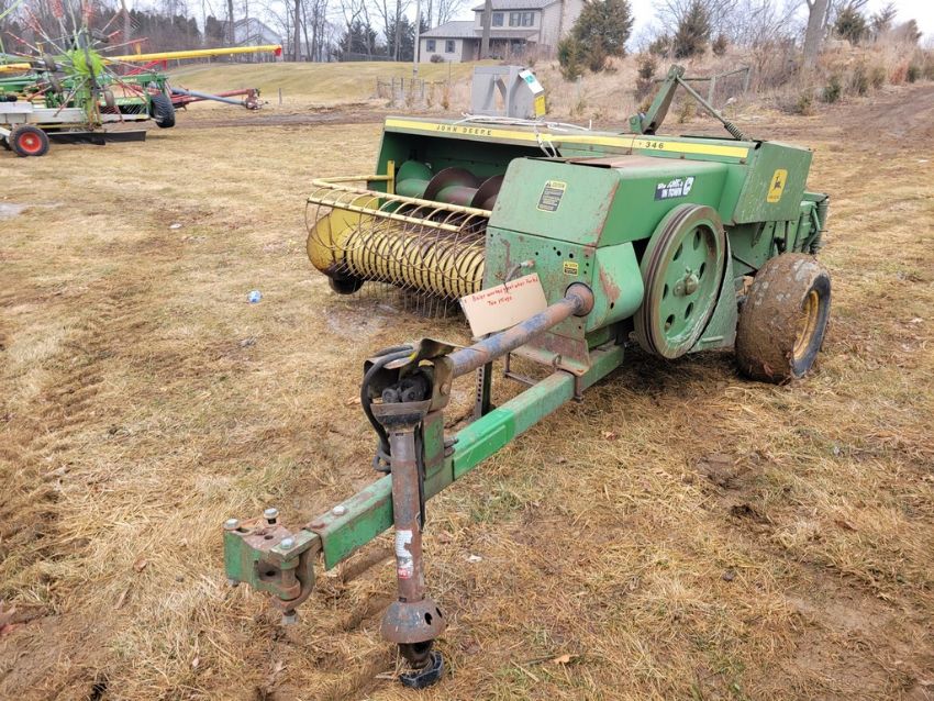 John Deere 346 Small Square Baler - 540 pto, WORKED GOOD WHEN QUIT USING 2 yr Ago. SN# 187181 / TAG# 16111 -- Item Located @ the Cumberland Valley Auction Yard - 101 Springfield Rd Shippensburg PA 17257