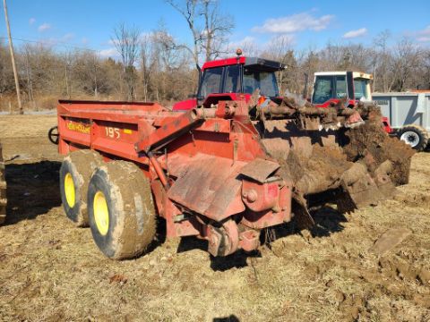 New Holland 195 Manure Spreader 'Works' - Tandem Axle, Flotation Tires, 2 Beater, Hydraulic End Gate, 1000 pto, SN# 1024609 / TAG# 14171 -- Item Located @ the Cumberland Valley Auction Yard - 101 Springfield Rd Shippensburg PA 17257