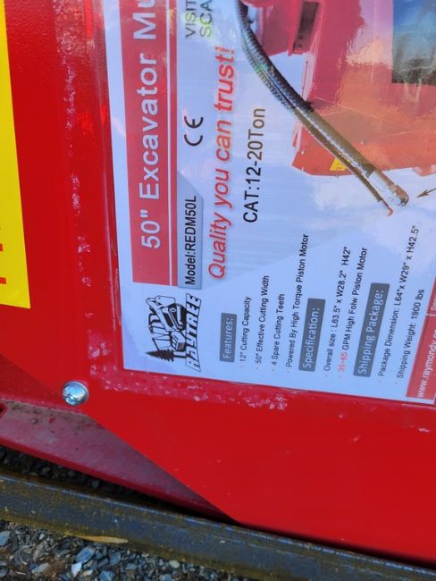 Raytree REDM50L Drum Mulcher 'NEW' - Excavator Mount, FITS 12 to 20 Ton, 50" Working Width, 35-650gpm, ( FILE PHOTOS MAY HAVE BEEN USED FOR THIS UNIT, COLOR And Condition may not be exact due to the quality of workmanship on this unit, YOU ARE BUYING THIS UNIT AS-IS, MARTIN'S AUCTION SERVICE DOES NOT GUARANTEE ANY FUNCTIONALITY OF THIS UNIT / TAG# 15274 -- Item Located @ the Cumberland Valley Auction Yard - 101 Springfield Rd Shippensburg PA 17257